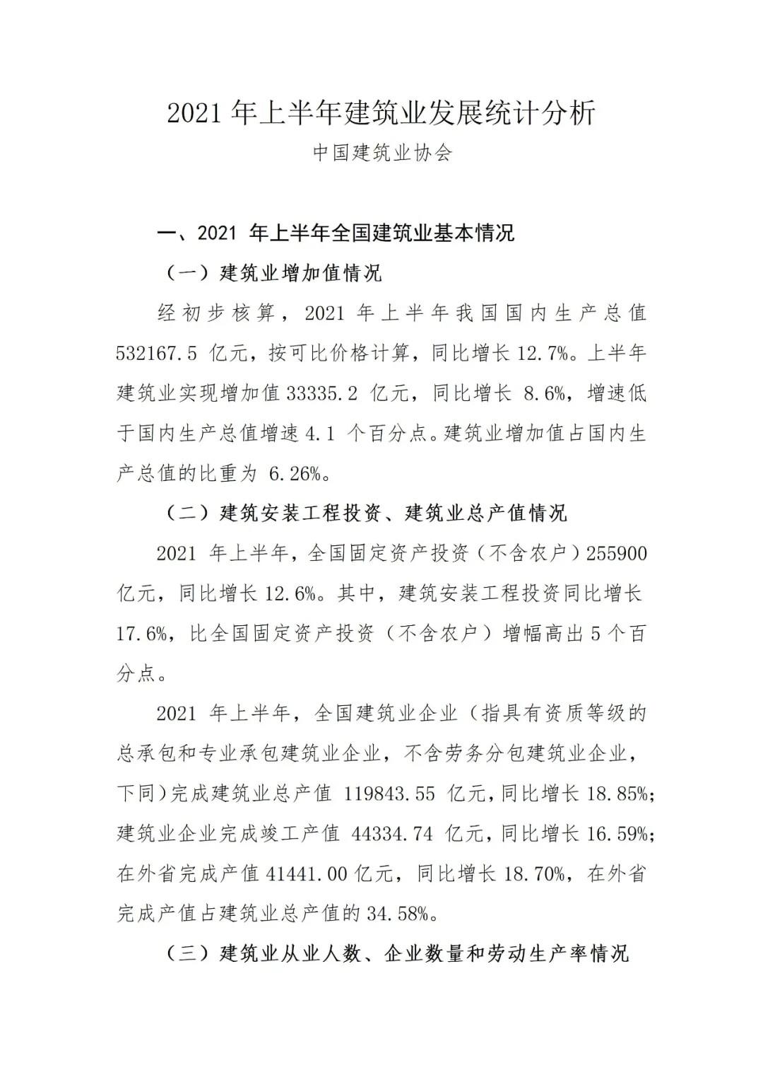 2021年上半年建筑業(yè)發(fā)展統(tǒng)計分析